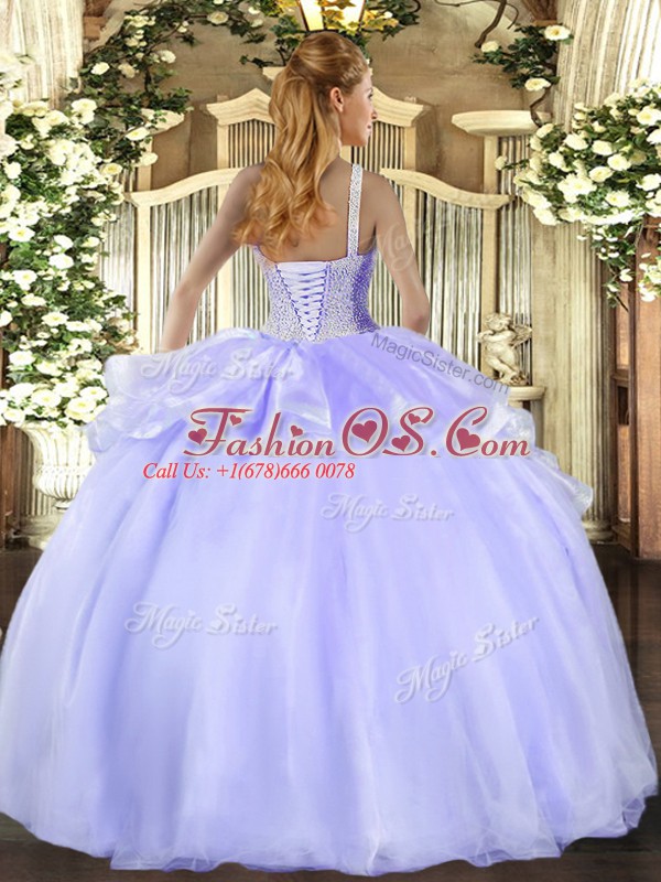 Wonderful Floor Length Lilac Sweet 16 Dress Organza Sleeveless Beading
