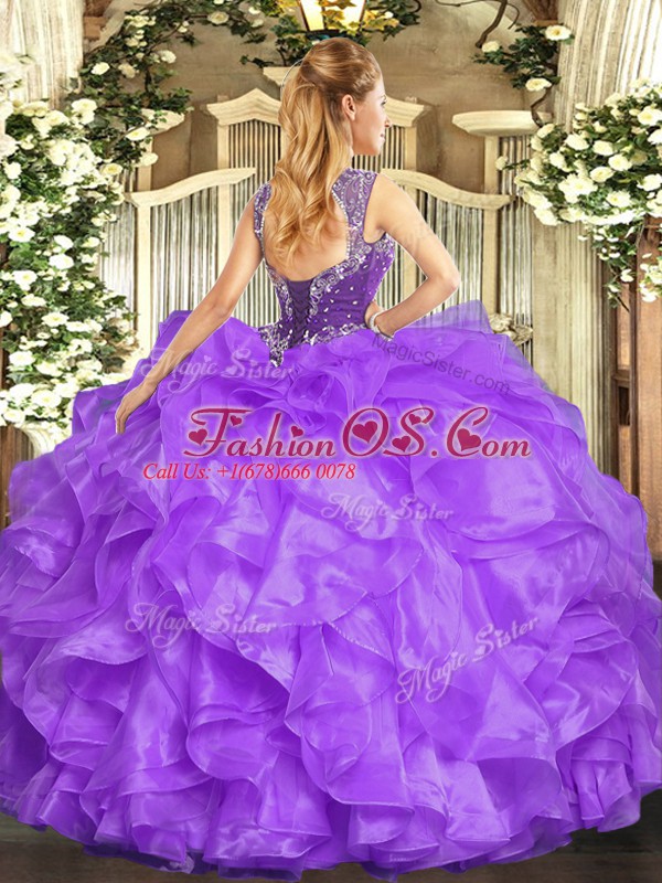 Aqua Blue Sleeveless Floor Length Beading and Ruffles Lace Up Sweet 16 Quinceanera Dress