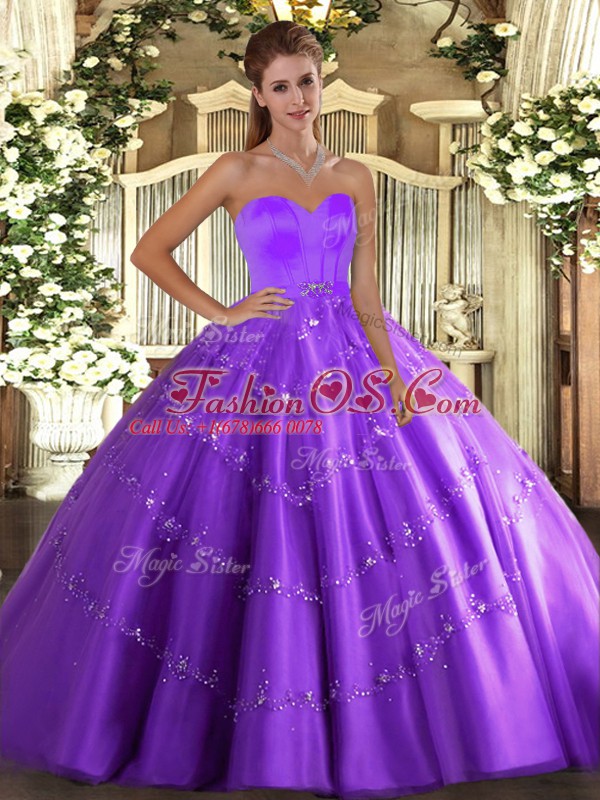 Eggplant Purple Quinceanera Gowns Military Ball and Sweet 16 and Quinceanera with Beading and Appliques Sweetheart Sleeveless Lace Up