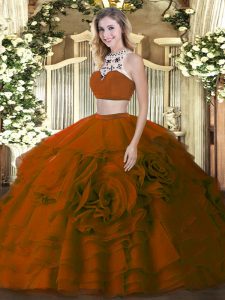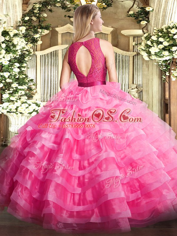 Classical Sleeveless Organza Floor Length Zipper Ball Gown Prom Dress in Lavender with Ruffled Layers