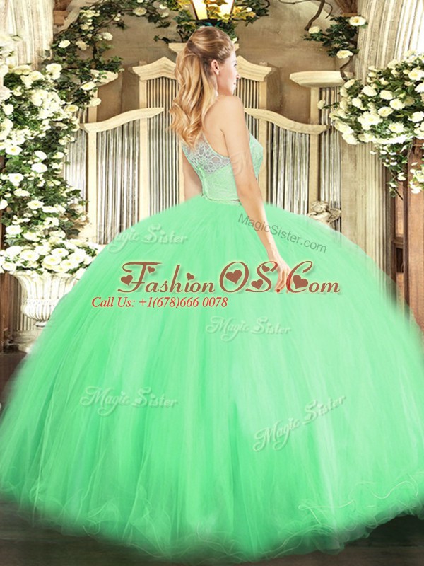 Fashion Gold Two Pieces Tulle Scoop Sleeveless Lace Floor Length Zipper 15 Quinceanera Dress
