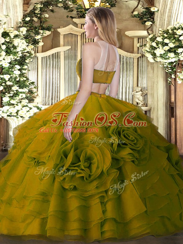 Designer Floor Length Two Pieces Sleeveless Brown 15th Birthday Dress Backless