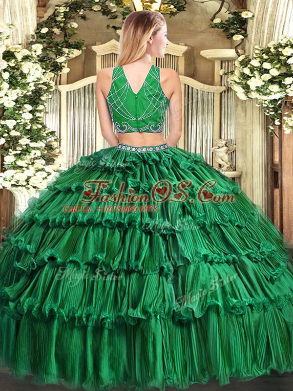 Top Selling Burgundy Tulle Zipper High-neck Sleeveless Floor Length Quinceanera Dress Beading and Ruffled Layers