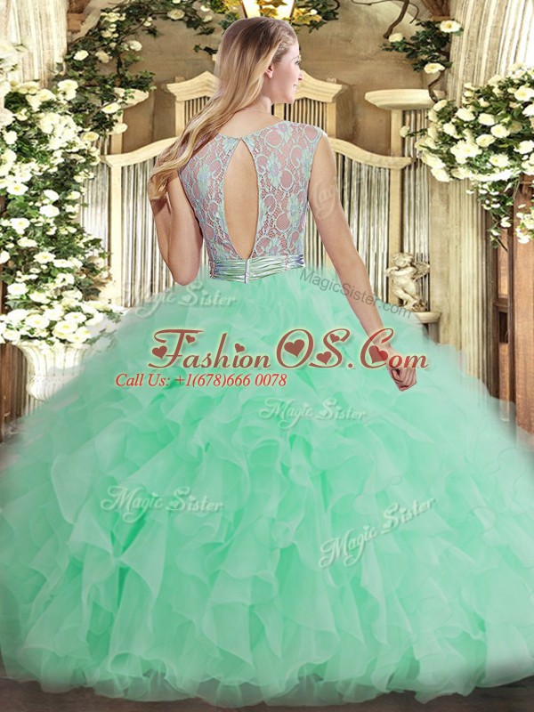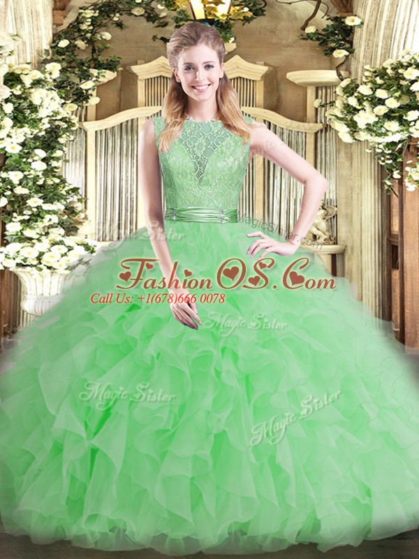 Floor Length Ball Gowns Sleeveless Apple Green 15 Quinceanera Dress Backless