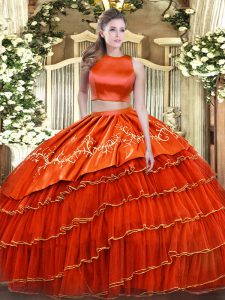 Comfortable Scoop Sleeveless Tulle Sweet 16 Dress Beading and Ruffles Lace Up