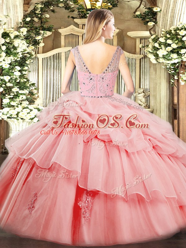 Lavender Tulle Zipper Vestidos de Quinceanera Sleeveless Floor Length Beading and Ruffles and Pick Ups