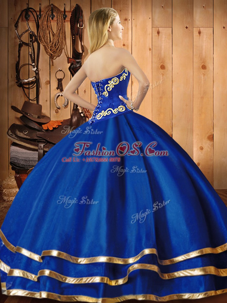 Popular Blue Sleeveless Embroidery Floor Length Quinceanera Dresses
