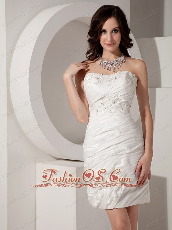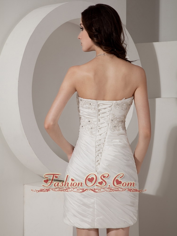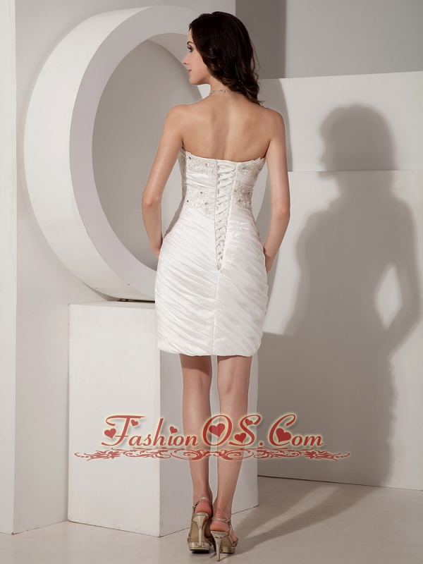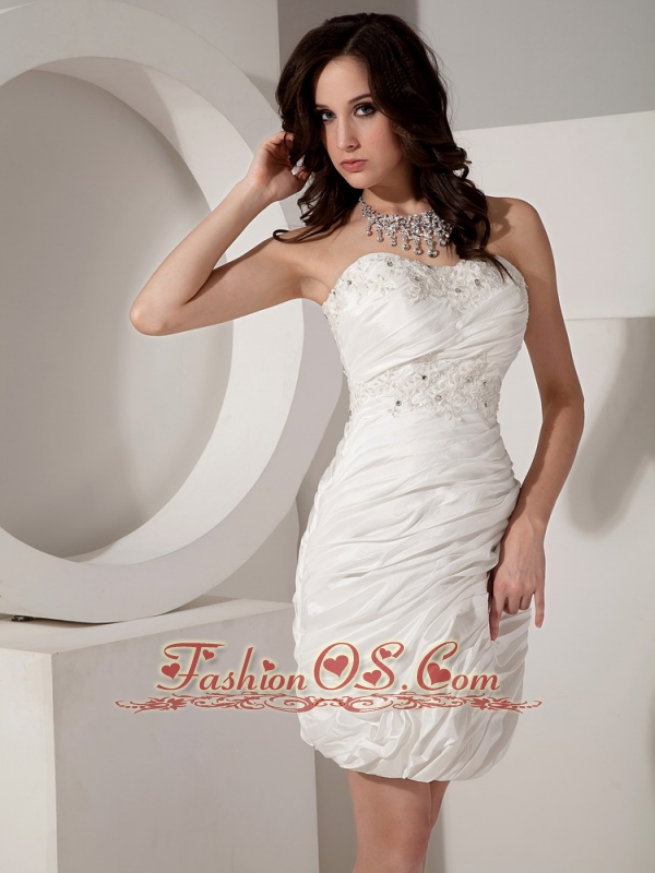 Custom Made White Column Sheath Sweetheart Homecoming Dress Taffeta Beading Mini-length