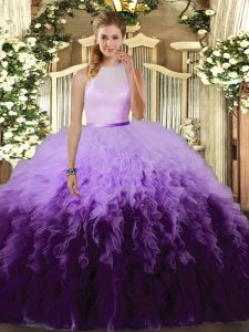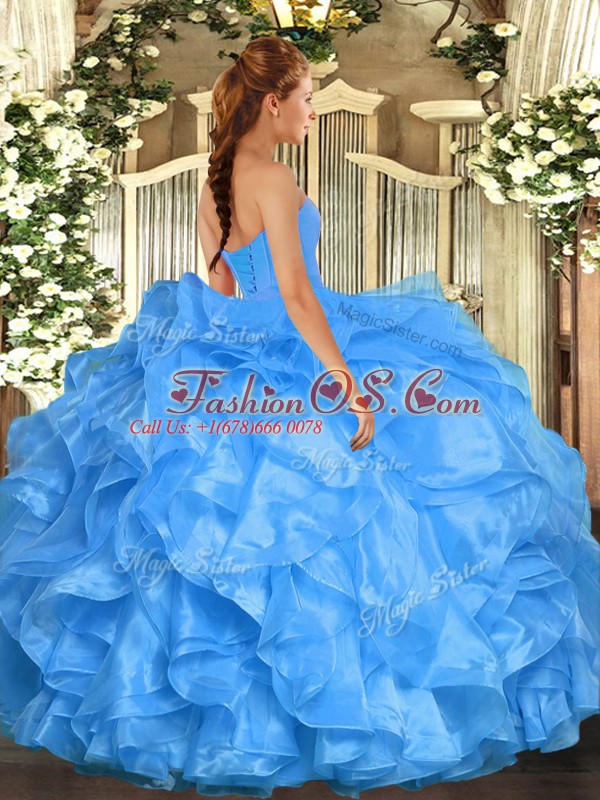 Deluxe Sleeveless Lace Up Floor Length Beading and Ruffles 15th Birthday Dress
