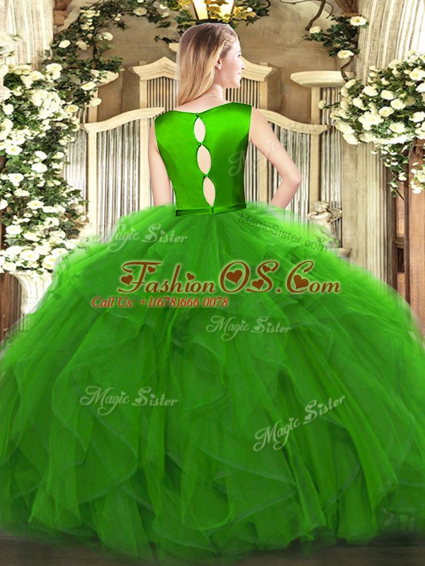 Turquoise Scoop Neckline Ruffles 15 Quinceanera Dress Sleeveless Clasp Handle