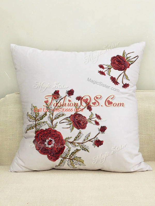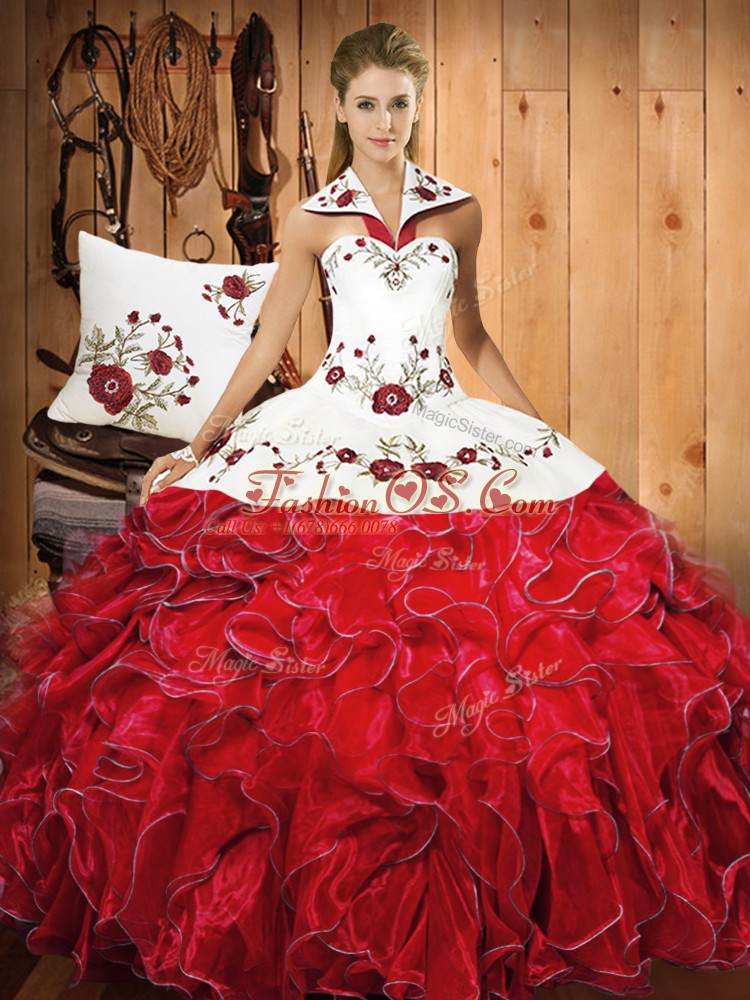 White And Red Lace Up Quinceanera Dresses Embroidery and Ruffles Sleeveless Floor Length