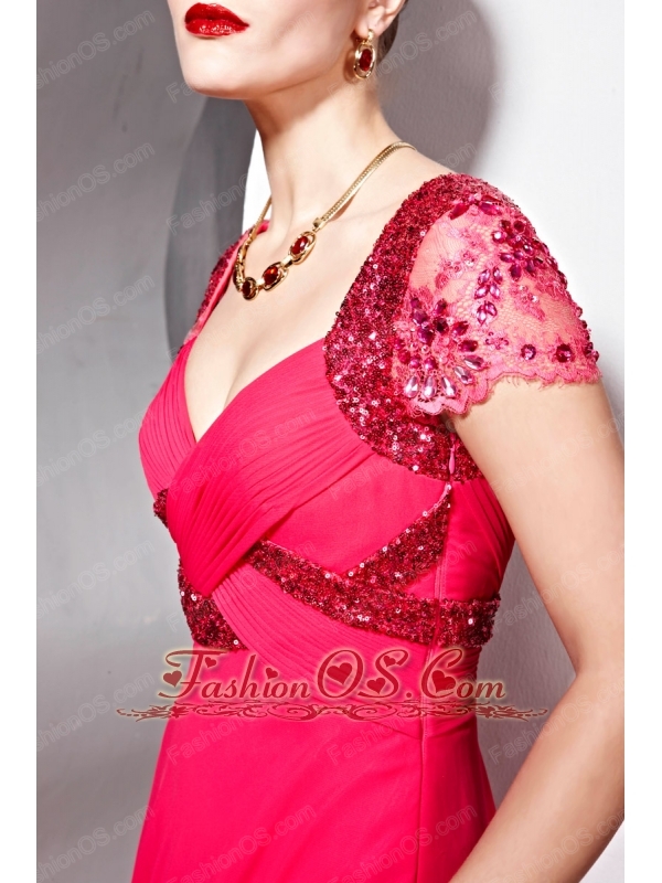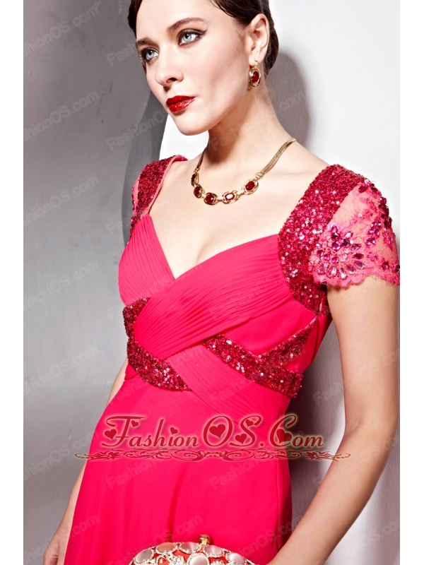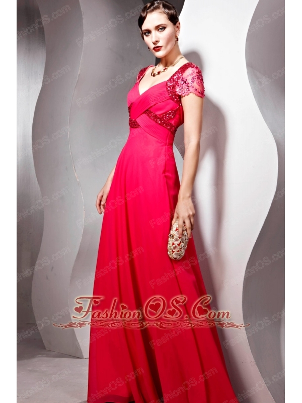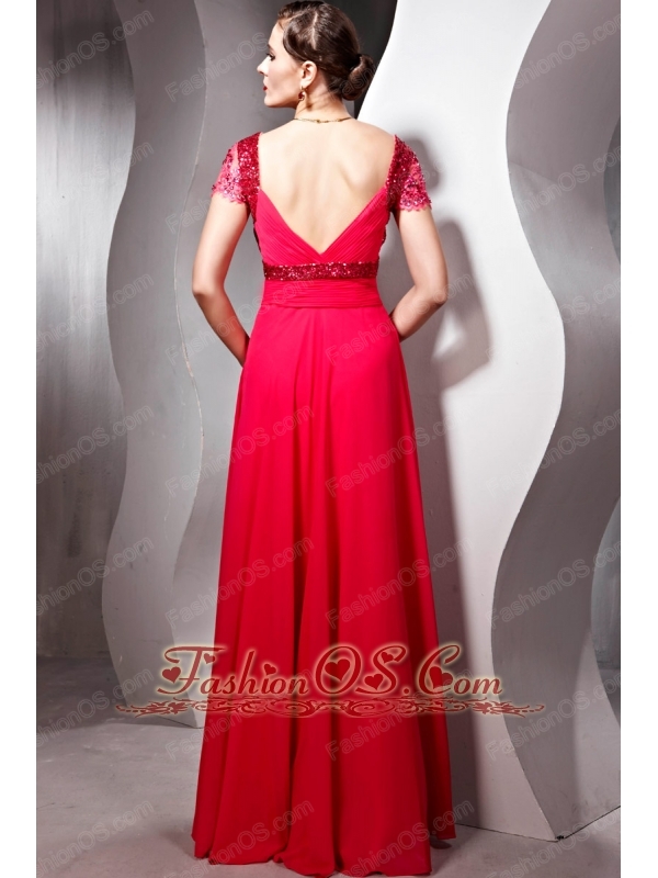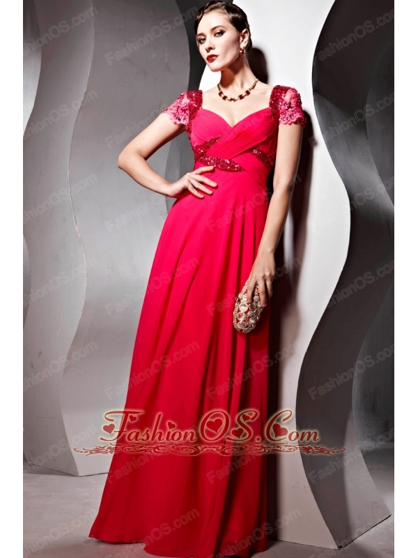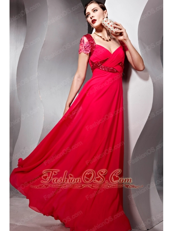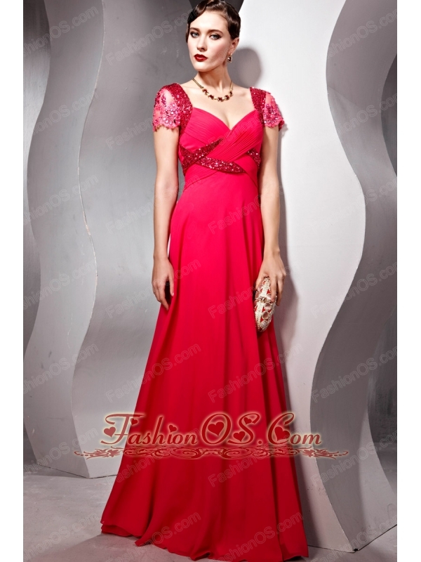 Red Empire Sweetheart Floor-length Chiffon Sequins and Rhinestone Prom/Party Dress