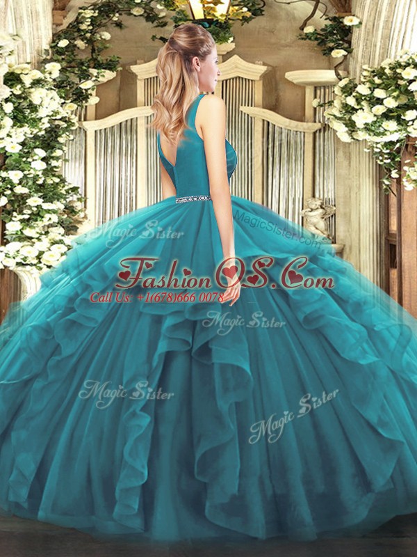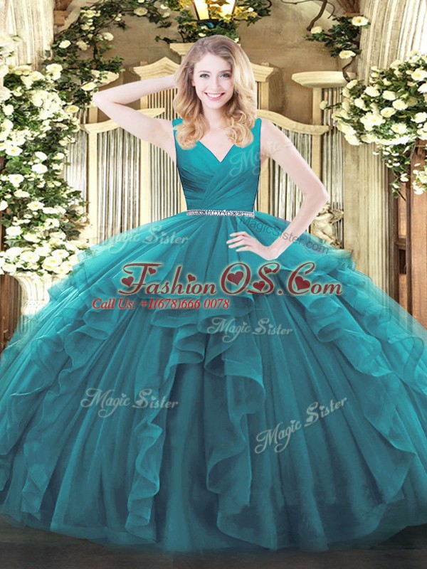 Artistic Sleeveless Beading and Ruffles Zipper Vestidos de Quinceanera