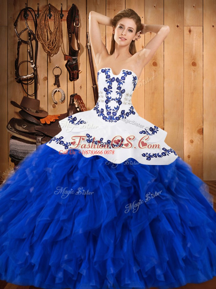 Dynamic Sleeveless Lace Up Floor Length Embroidery and Ruffles Ball Gown Prom Dress
