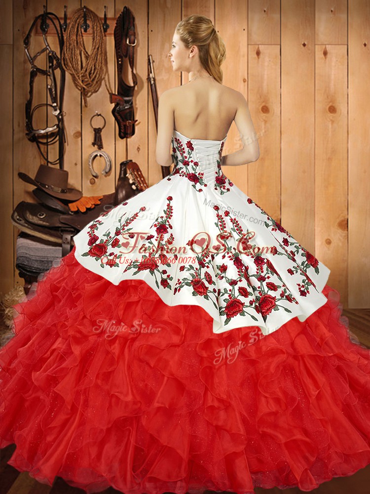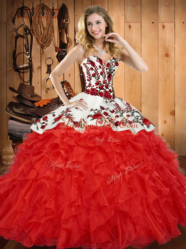 Most Popular Ball Gowns Quince Ball Gowns Wine Red Sweetheart Satin and Organza Sleeveless Floor Length Lace Up