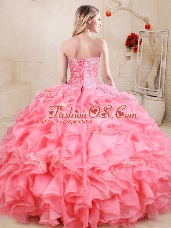 Lavender Sleeveless Floor Length Beading and Ruffles Lace Up 15th Birthday Dress