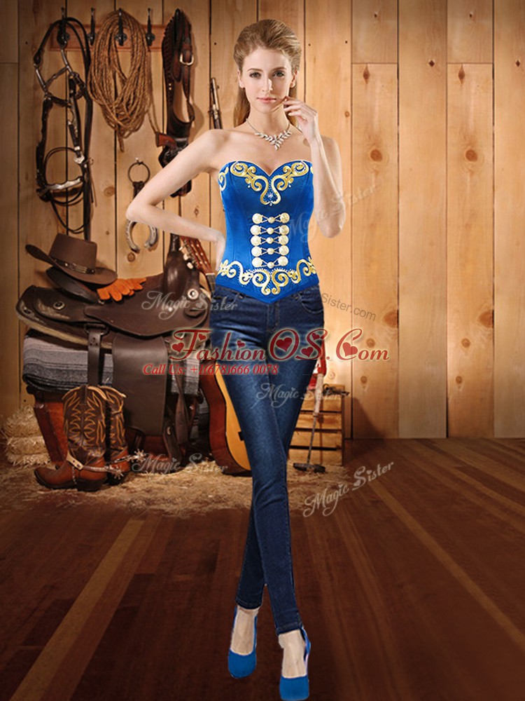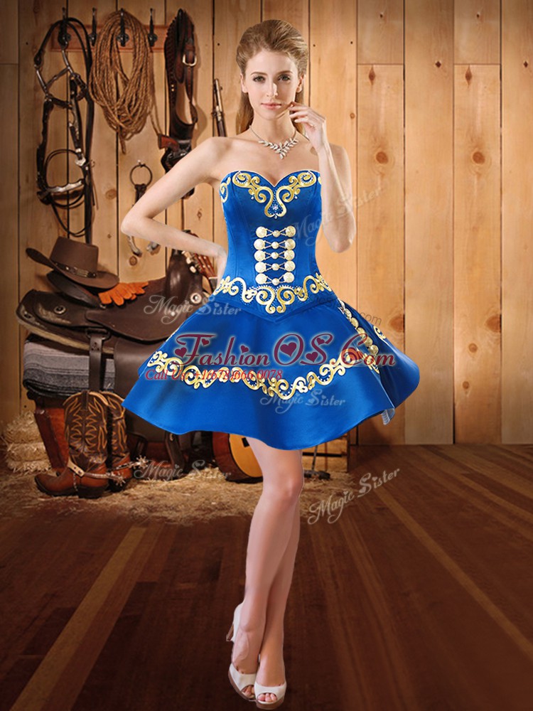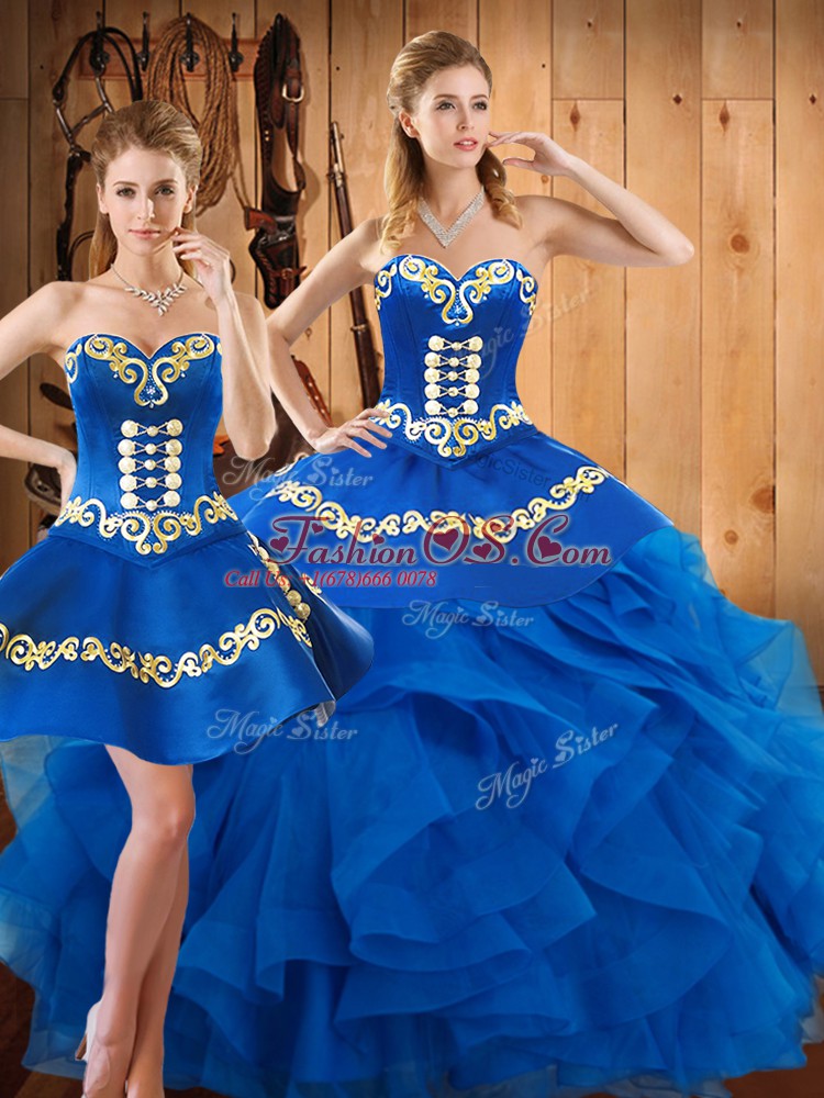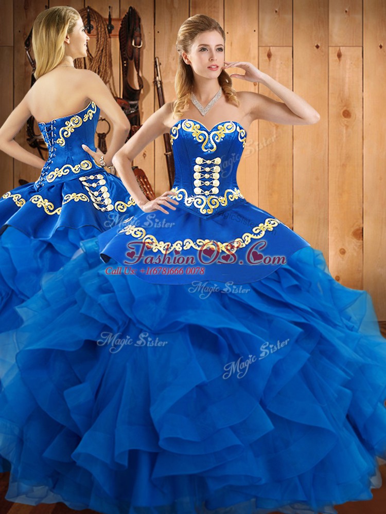 Blue Lace Up Sweet 16 Quinceanera Dress Embroidery and Ruffles Sleeveless Floor Length