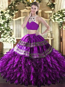 Multi-color Quince Ball Gowns Sweet 16 and Quinceanera with Beading and Ruffles Scoop Sleeveless Backless