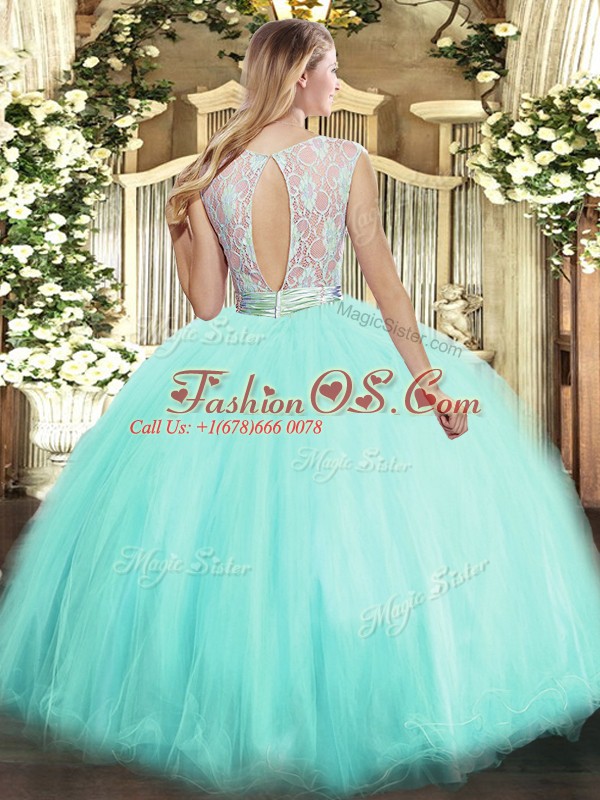 Free and Easy Baby Pink Sleeveless Tulle Backless Quinceanera Dresses for Military Ball and Sweet 16 and Quinceanera