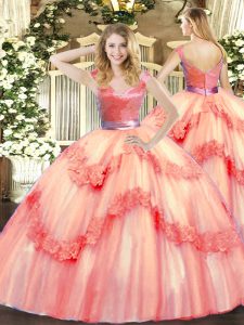 Organza Sleeveless With Train 15th Birthday Dress Sweep Train and Ruffles