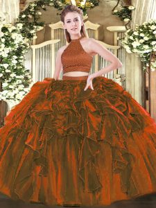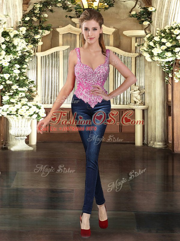 Sumptuous Tulle Straps Sleeveless Lace Up Beading and Ruffles Ball Gown Prom Dress in Fuchsia