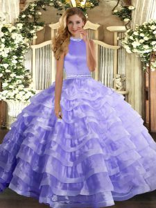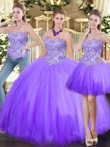Purple Ball Gowns Embroidery and Ruffles Quince Ball Gowns Lace Up Tulle Sleeveless Floor Length