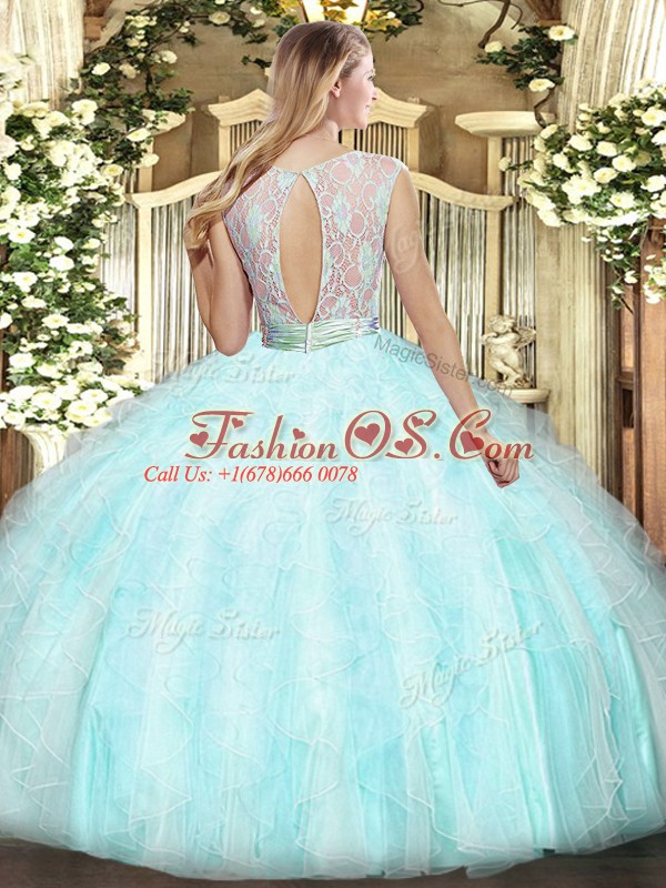Sophisticated Sleeveless Floor Length Beading and Ruffles Backless Quinceanera Gowns with Lavender