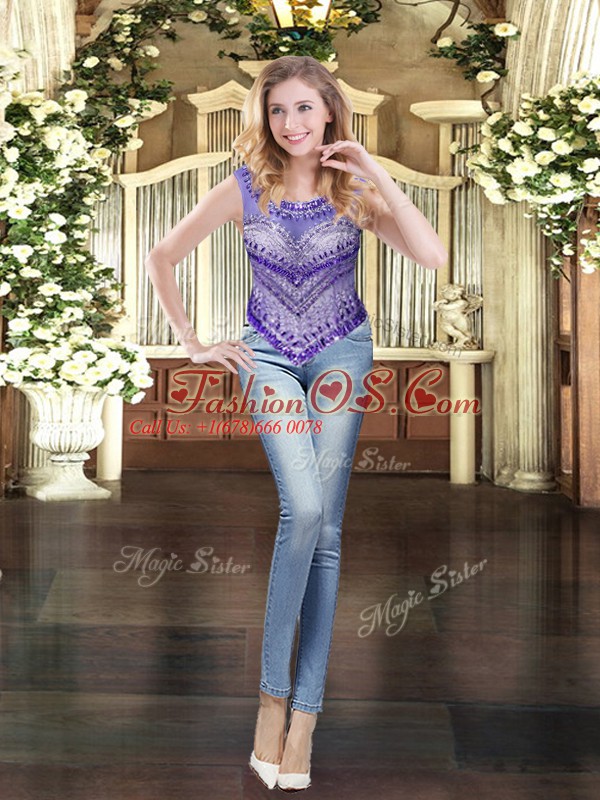 Dazzling Tulle Scoop Sleeveless Lace Up Beading and Ruffles 15th Birthday Dress in Lavender