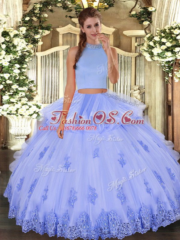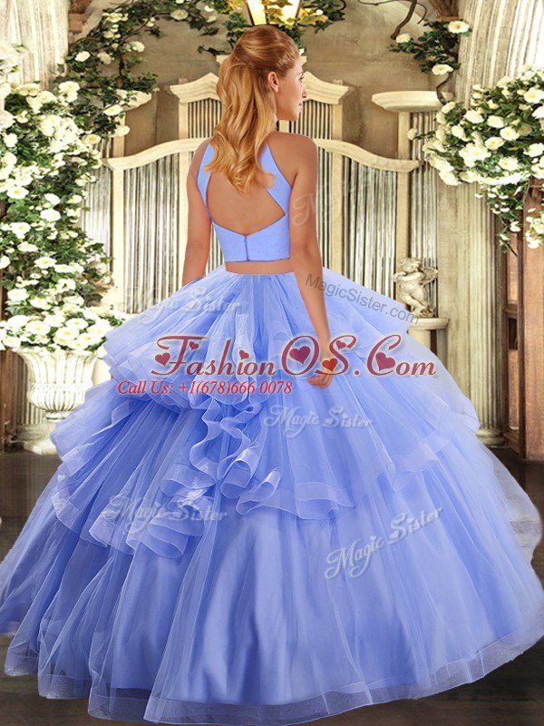 Modern Light Blue Sleeveless Beading and Appliques and Ruffles Floor Length Sweet 16 Quinceanera Dress