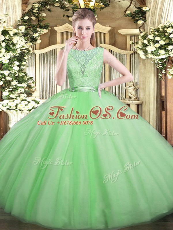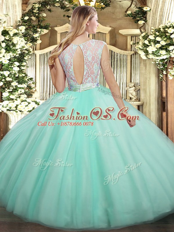 New Arrival Floor Length Backless 15th Birthday Dress Apple Green for Military Ball and Sweet 16 and Quinceanera with Lace