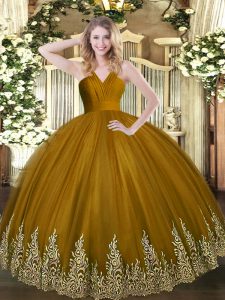 Satin and Organza Strapless Sleeveless Lace Up Embroidery and Ruffles Ball Gown Prom Dress in Teal