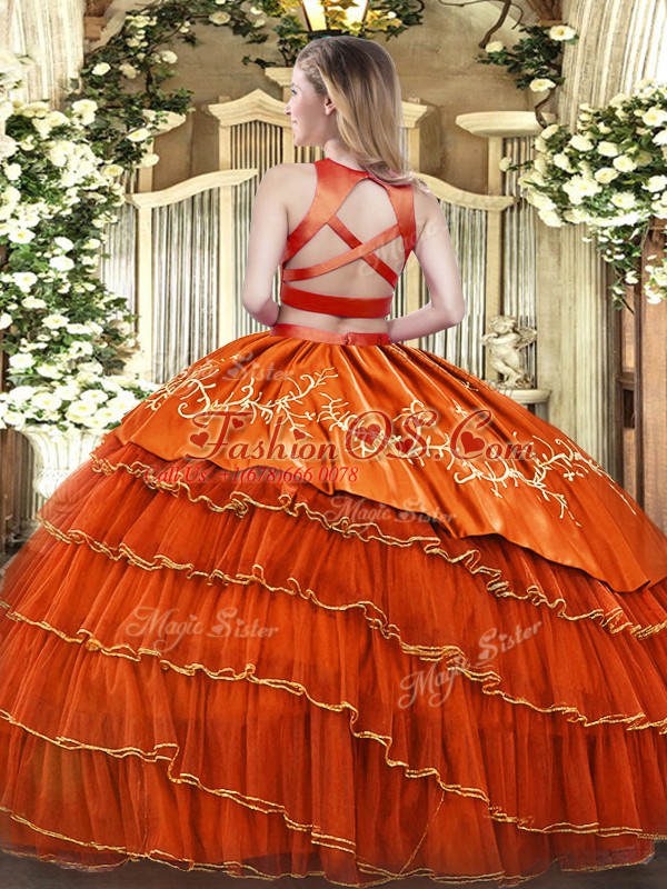 Extravagant Purple Tulle Criss Cross High-neck Sleeveless Floor Length Sweet 16 Dress Embroidery and Ruffled Layers