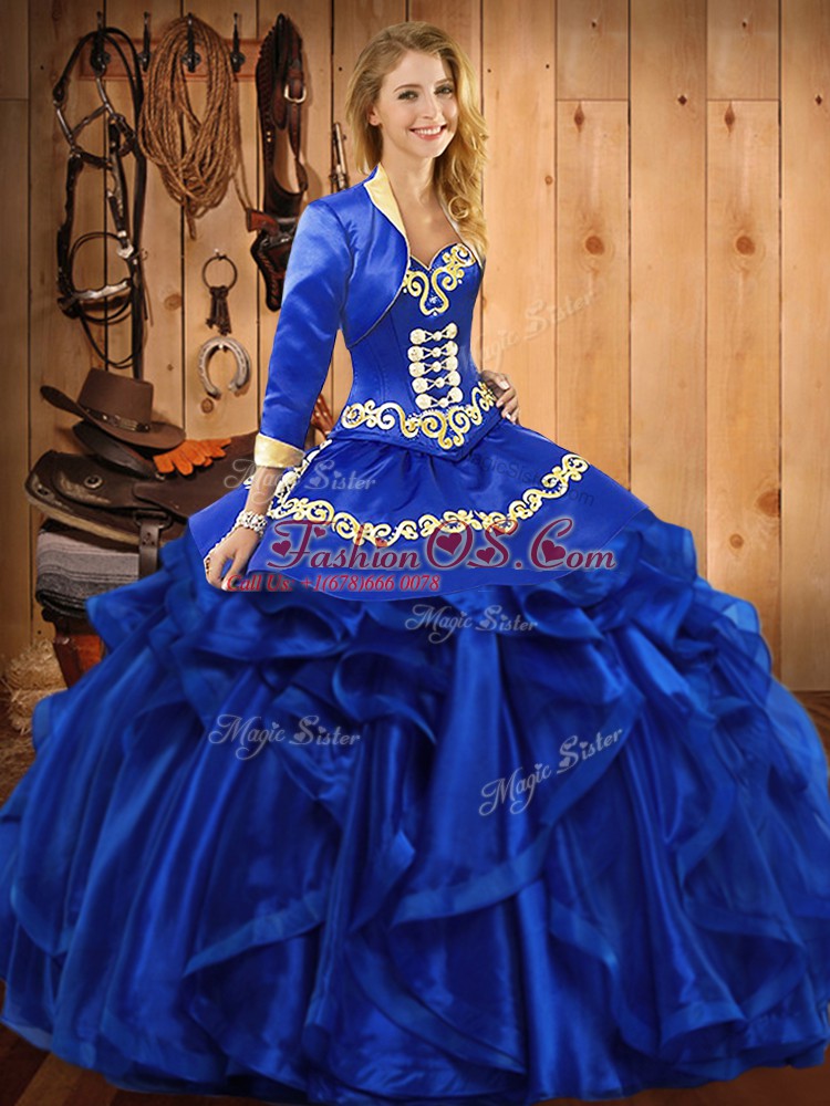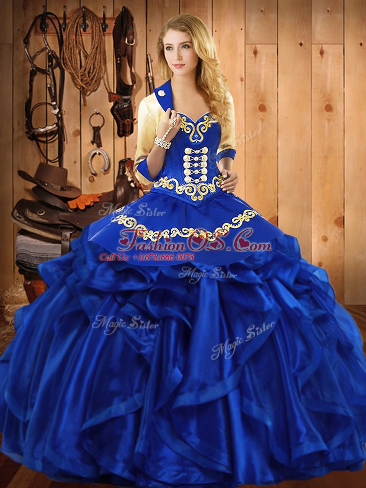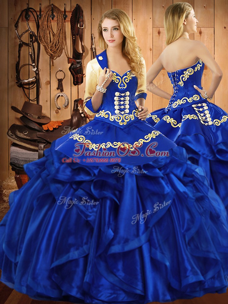 Sleeveless Embroidery and Ruffles Lace Up Quinceanera Gown