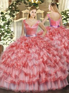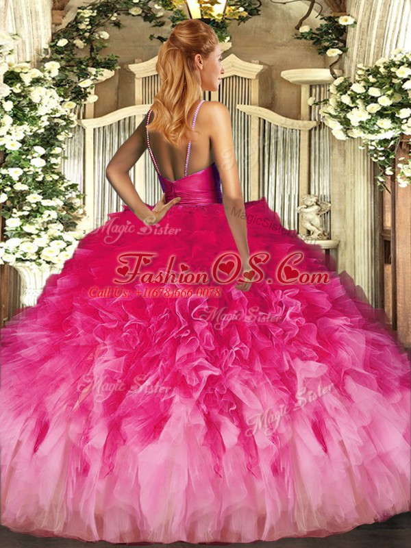 Popular Multi-color Backless Vestidos de Quinceanera Beading and Ruffles Sleeveless Floor Length