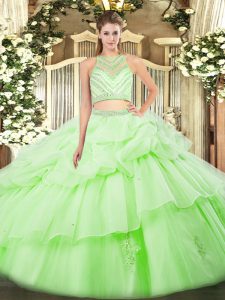 On Sale V-neck Sleeveless Sweet 16 Dresses Floor Length Beading and Ruffles Brown Tulle
