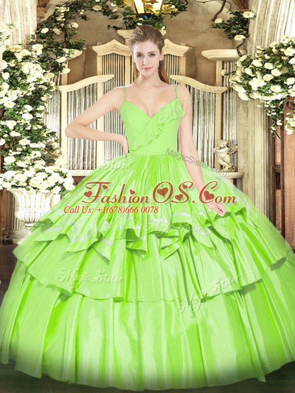 High Class Taffeta Sleeveless Floor Length Ball Gown Prom Dress and Ruffled Layers