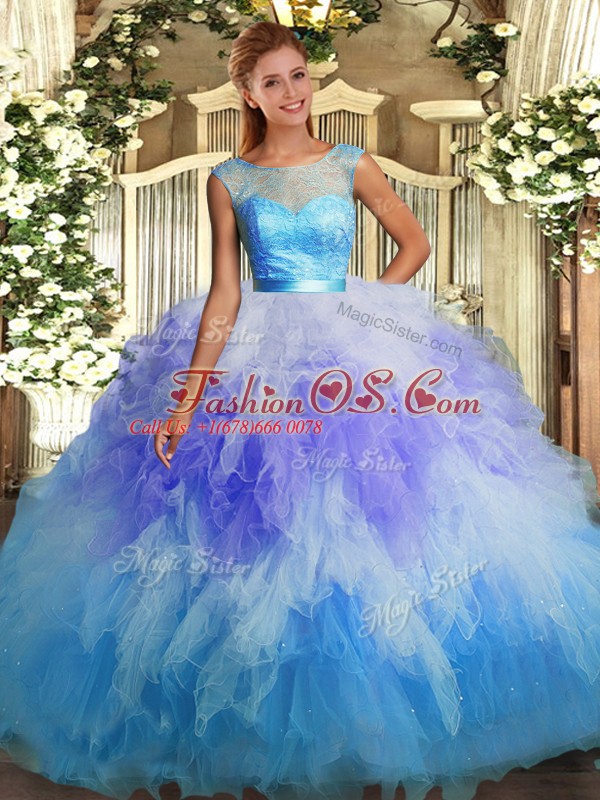 Multi-color Sleeveless Organza Backless Quinceanera Gowns for Military Ball and Sweet 16 and Quinceanera