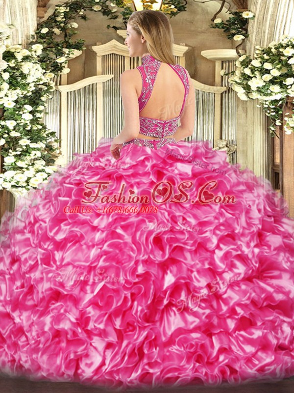 Lilac Sweet 16 Dresses Military Ball and Sweet 16 and Quinceanera with Beading and Ruffles High-neck Sleeveless Backless