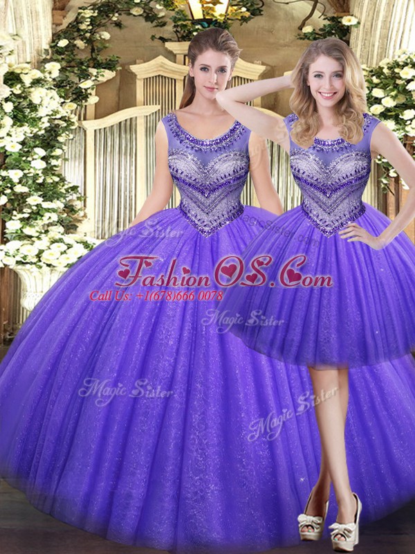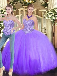 Sweetheart Sleeveless Tulle 15 Quinceanera Dress Beading Lace Up