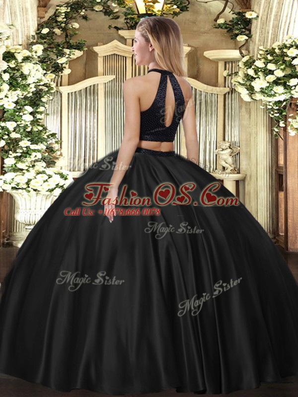 Spectacular Halter Top Sleeveless Sweet 16 Dresses Floor Length Beading Fuchsia Tulle