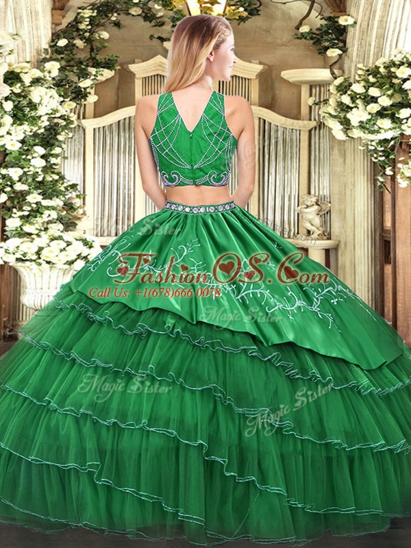 Modern Sleeveless Tulle Floor Length Zipper Sweet 16 Quinceanera Dress in Purple with Beading and Embroidery and Ruffled Layers