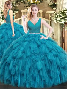 Sweet High-neck Sleeveless Criss Cross Sweet 16 Dress Aqua Blue Tulle