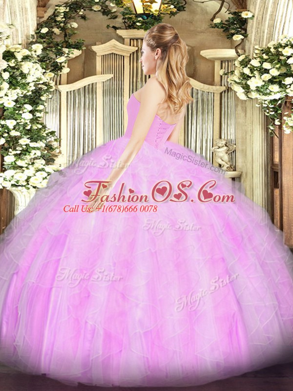 Lovely Beading and Ruffles 15th Birthday Dress Lavender Lace Up Sleeveless Floor Length