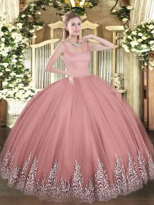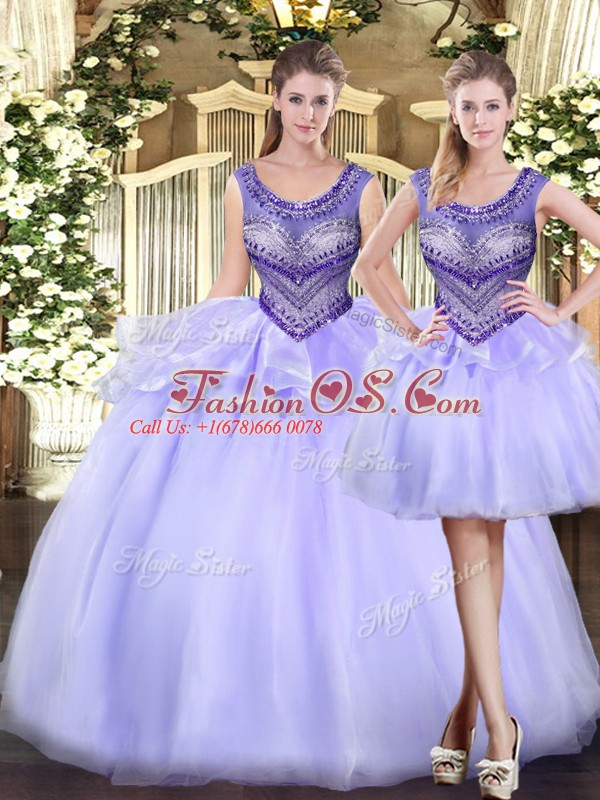 Sophisticated Lavender Tulle Lace Up Scoop Sleeveless Floor Length Quinceanera Dresses Beading and Ruffles