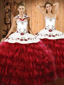 Floor Length Fuchsia Quinceanera Dress Organza Sleeveless Lace and Ruffles
