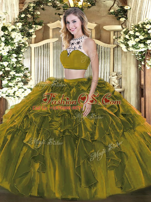 Sleeveless Beading and Ruffles Backless 15th Birthday Dress