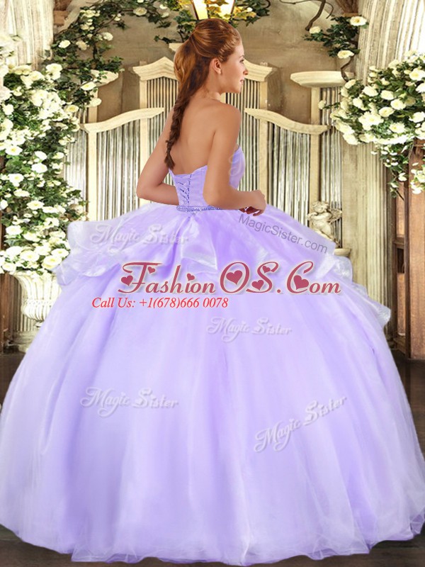 On Sale Peach Sleeveless Floor Length Beading and Ruffles Lace Up Quinceanera Dress