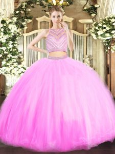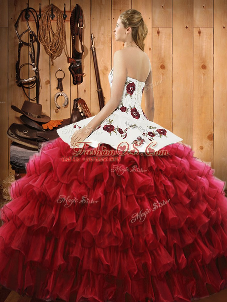 Spectacular Wine Red Ball Gowns Embroidery and Ruffled Layers Quince Ball Gowns Lace Up Organza Sleeveless Floor Length