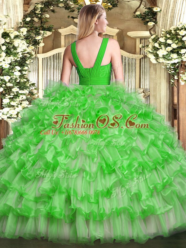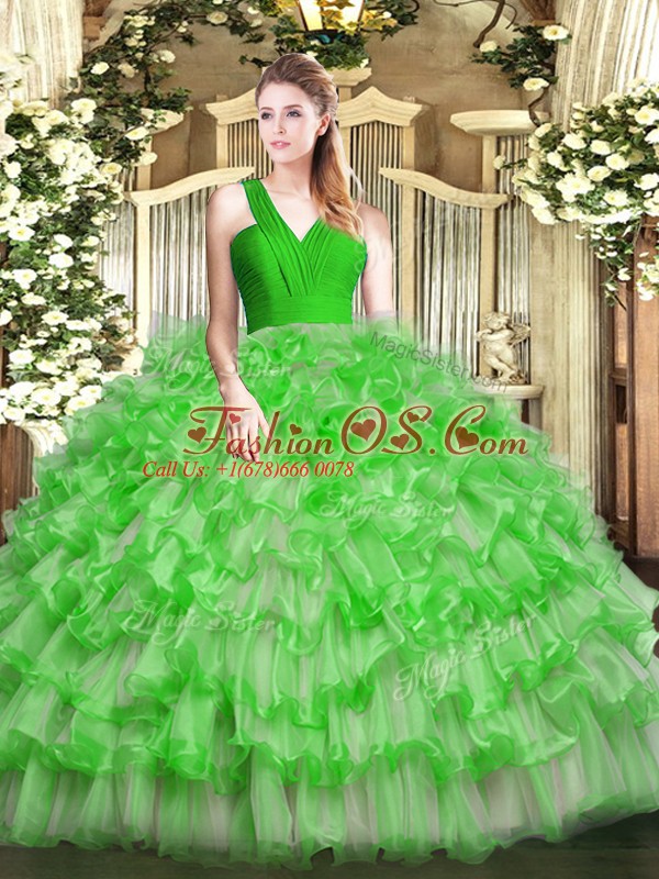Ideal Green Zipper V-neck Ruffled Layers Quinceanera Dresses Organza Sleeveless