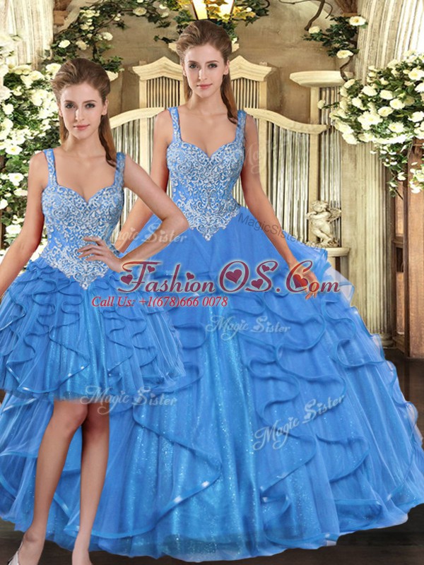 Latest Floor Length Ball Gowns Sleeveless Aqua Blue Quinceanera Gown Lace Up